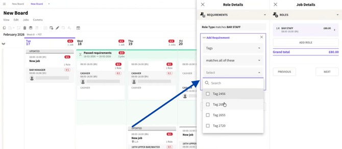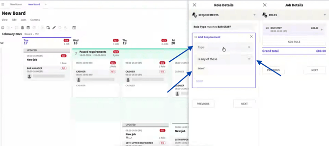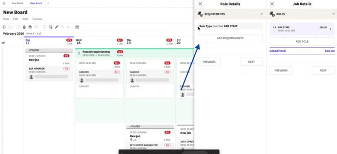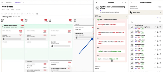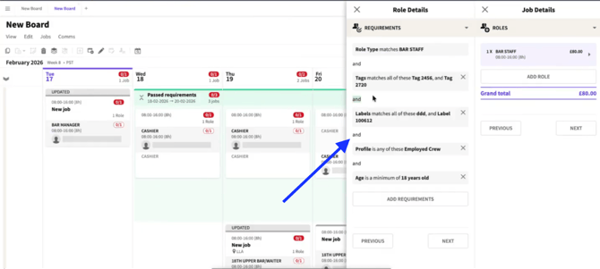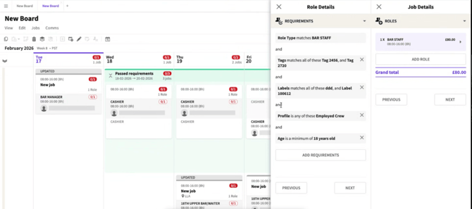 Roles promoted on the Job Board can be targeted to display only to Crew who meet all Requirements.